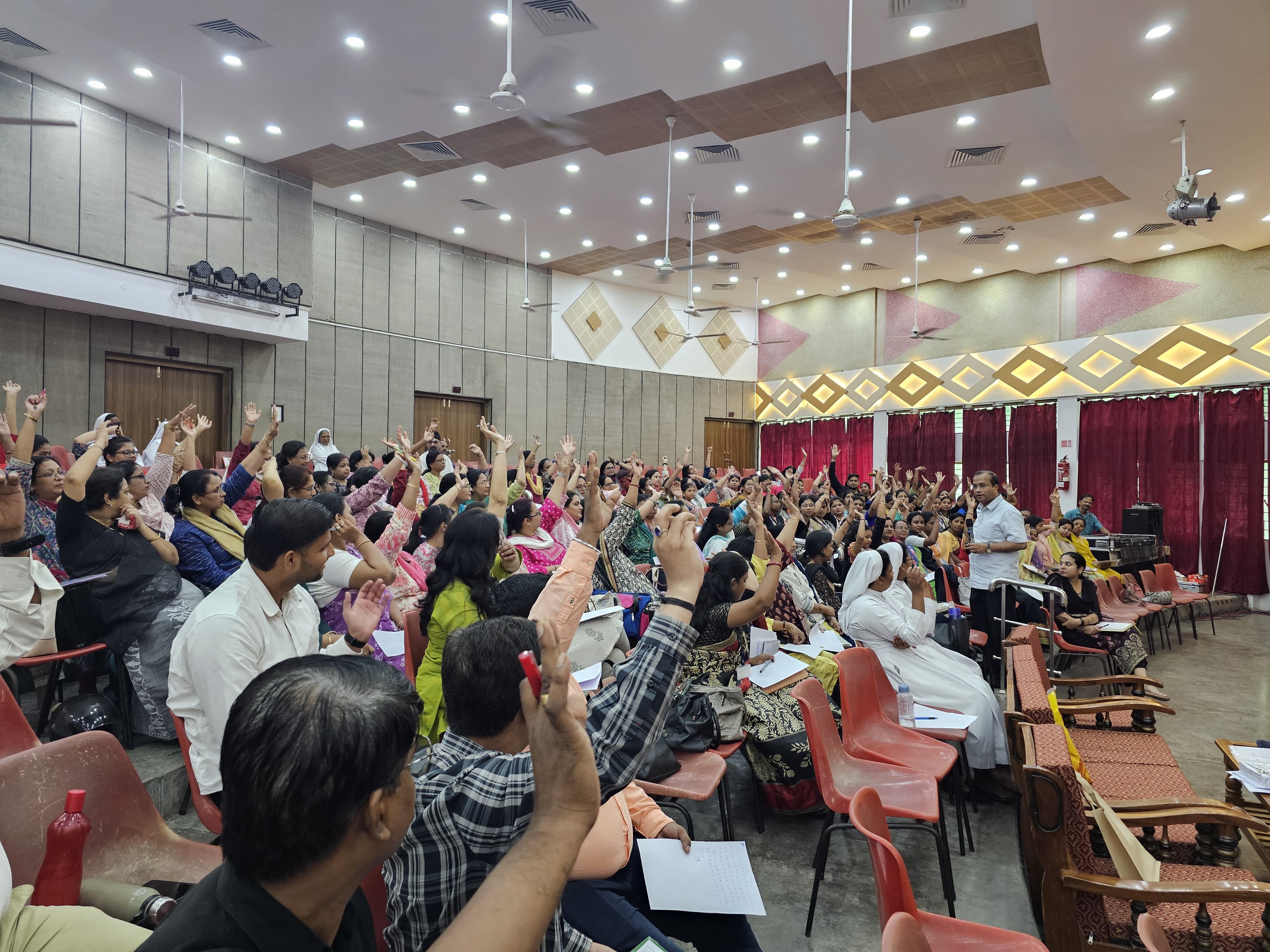 Amusing games organised by the Council including the ladies being asked to adorn a poster blindfolded and the gents being made to drape a saree within a minute, left the audience thoroughly entertained. Following the enthralling dance performances put up enthusiastically by the students of Class 5,9 and 10, the event came to a heartwarming close with Sister Hilda giving away the prizes to the winners andthe solemnhymn” Hail St. Joseph’ sung melodiously bythe school Choir.