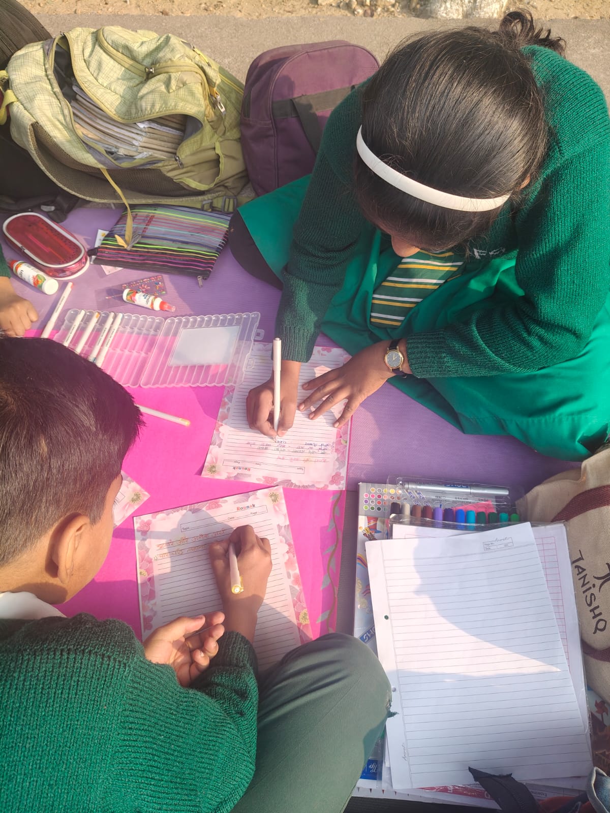 Firstly, the students prepared handmade cards with some decorative items like stickers, coloured pens and so on to decorate the cards. The cards were beautifully made with a Thank you note written.
