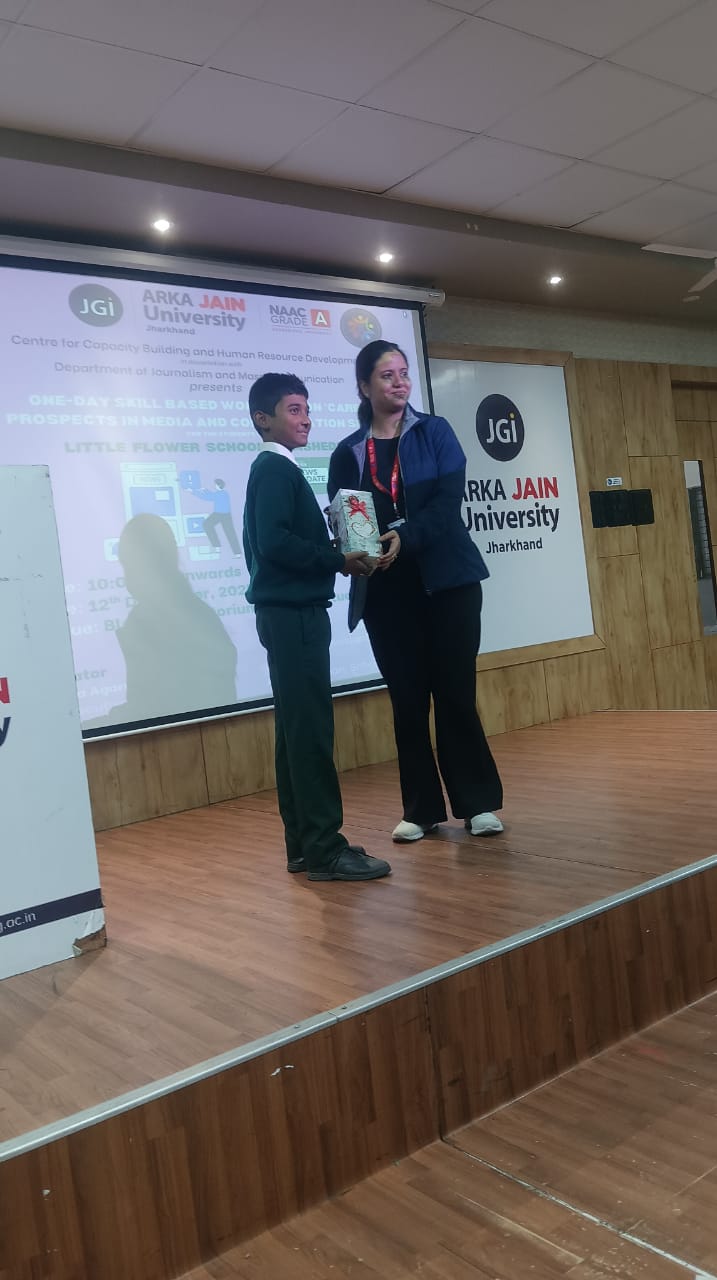 On 12 December 2025, the students of Classes 7 A, B and C of Little Flower School experienced learning beyond the precincts of their classrooms through an educational visit to ARKA JAIN UNIVERSITY, Jharkhand. As part of the Bagless Day initiative for English Language, a skill-based workshop on Career Prospects in Media and Communication Skills was organised to help students learn through observation and learning by doing.