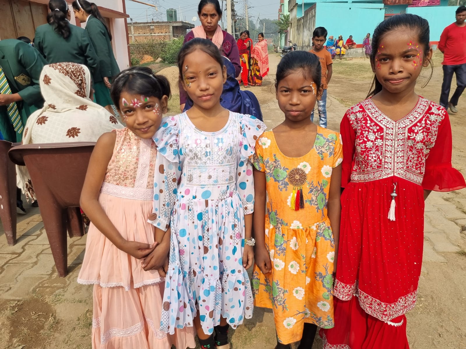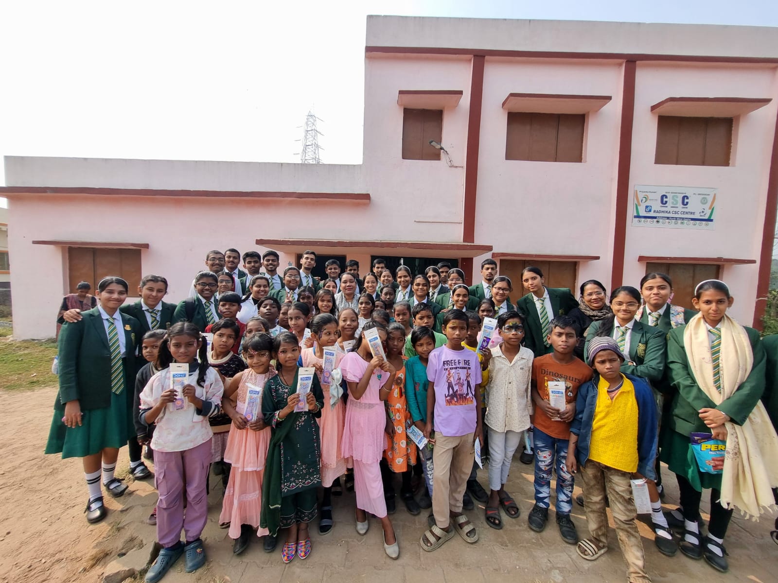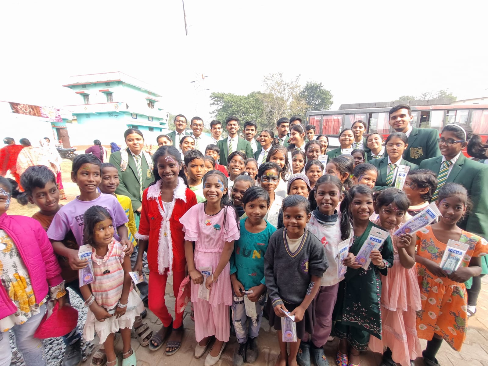 The students interacted warmly with the young children of the village, engaging them in fun activities such as games and face-painting, which created a cheerful and lively atmosphere. In addition, they distributed gifts and chocolates, bringing smiles to the children’s faces and filling the day with happiness.