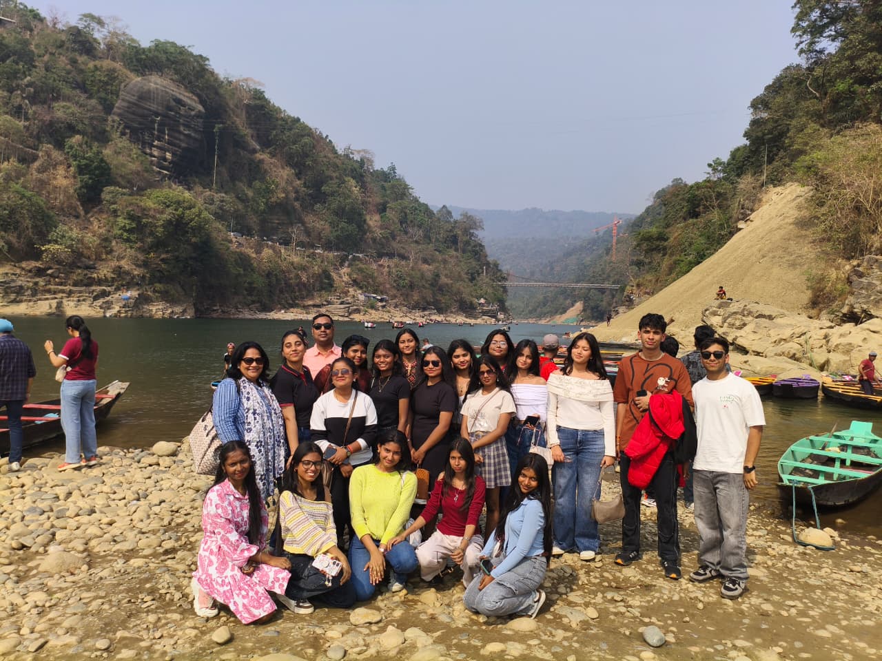 The students also explored Dawki, famous for the crystal-clear waters of the Umngot River, and later travelled to Cherrapunjee, where they visited breathtaking sites such as Nohkalikai Falls, Seven Sisters Falls, Eco Park, Mawsmai Cave, and Elephant Falls. The group also spent time in Guwahati, visiting important places including the Kamakhya Temple and Assam Shankardev Kalakshetra.